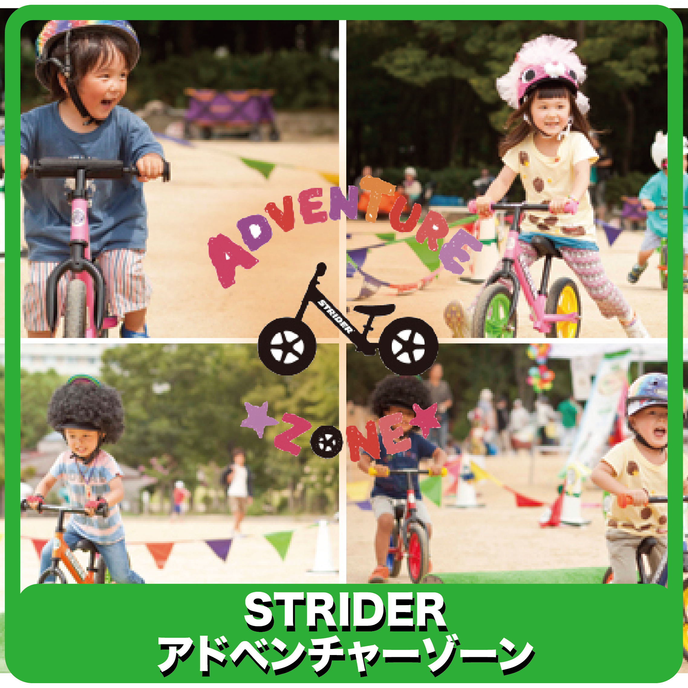 レースはありませんが、ストライダーを使った楽しく学べる「エブリバディストライダー」